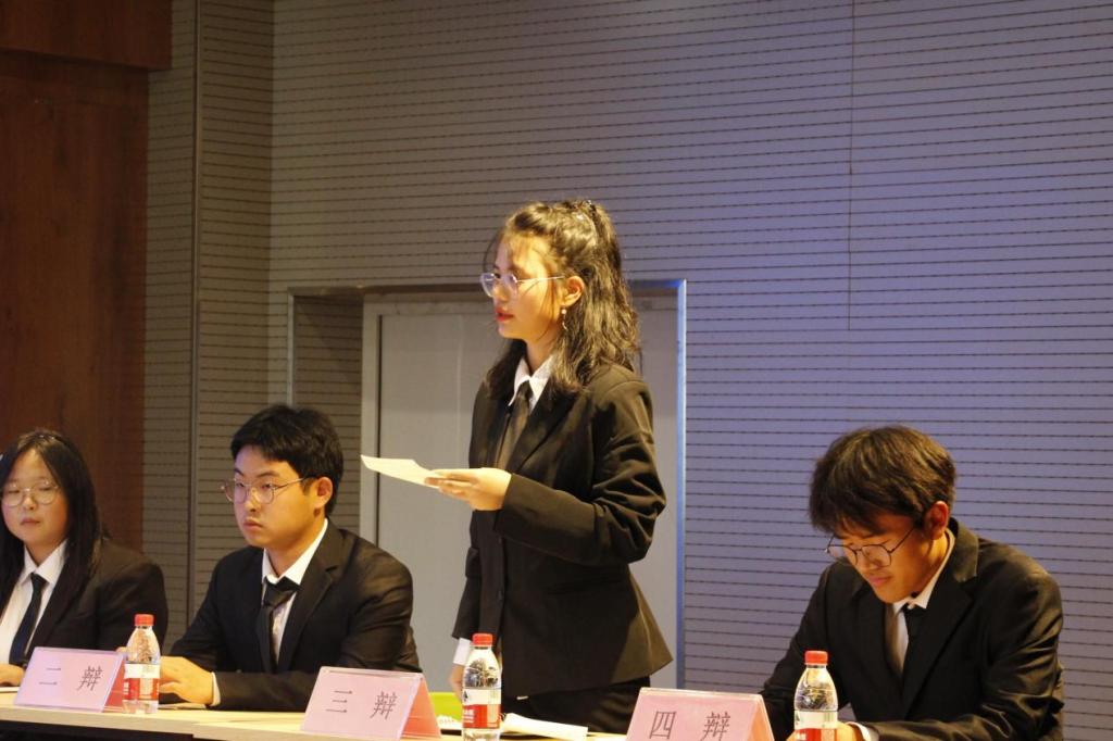 经过初赛、半决赛的选拔,共有两支队伍进入决赛。决赛辩题为“廉洁主要是靠教育还是主要靠制度”。辩论赛主席宣布比赛开始后,正反方分别迅速围绕辩题展开攻势,立足各自观点,陈述各自论点,结合时下热点,言辞犀利。在驳辩和自由辩论阶段,双方辩手针对提出的问题进行头脑风暴,辩手们唇枪舌剑,激烈辩论,彼此针锋相对而又不失风度。提问环节,辩手回答直击重点,台下气氛热烈,掌声迭起,掀起现场高潮。