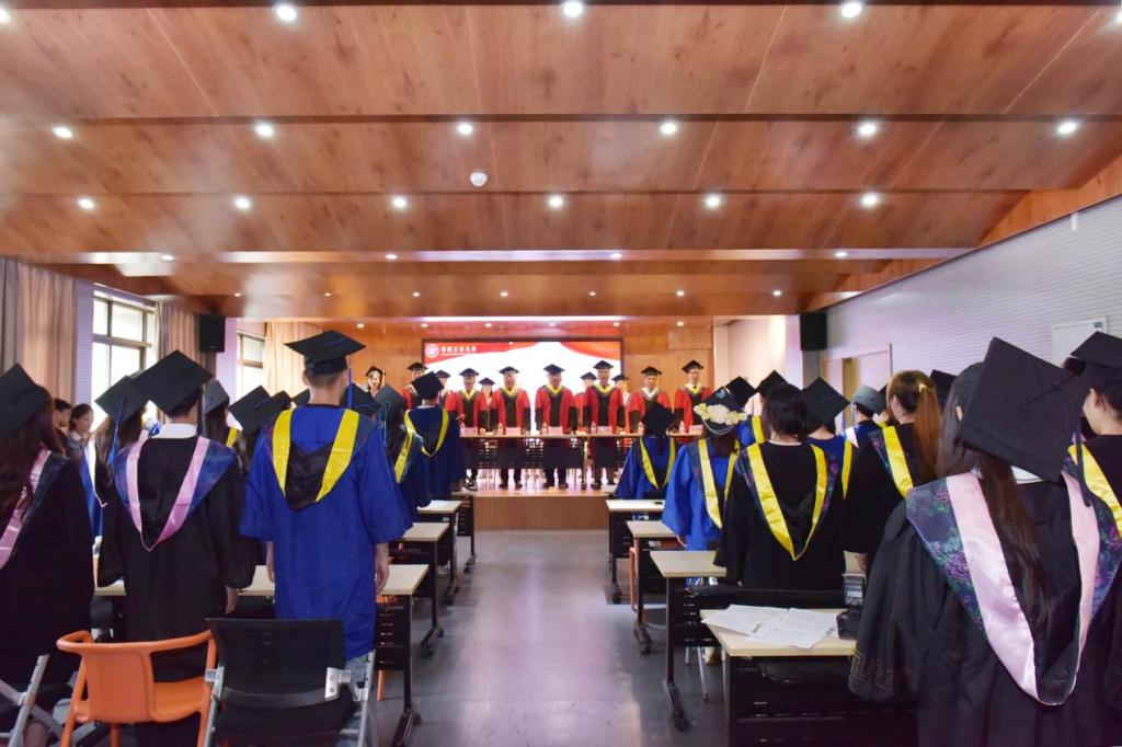 毕业生学位授予仪式在澎湃的国歌声中开始。副院长佘醒宣读学士学位授予决定,副院长宋益民宣读硕士学位授予决定。
