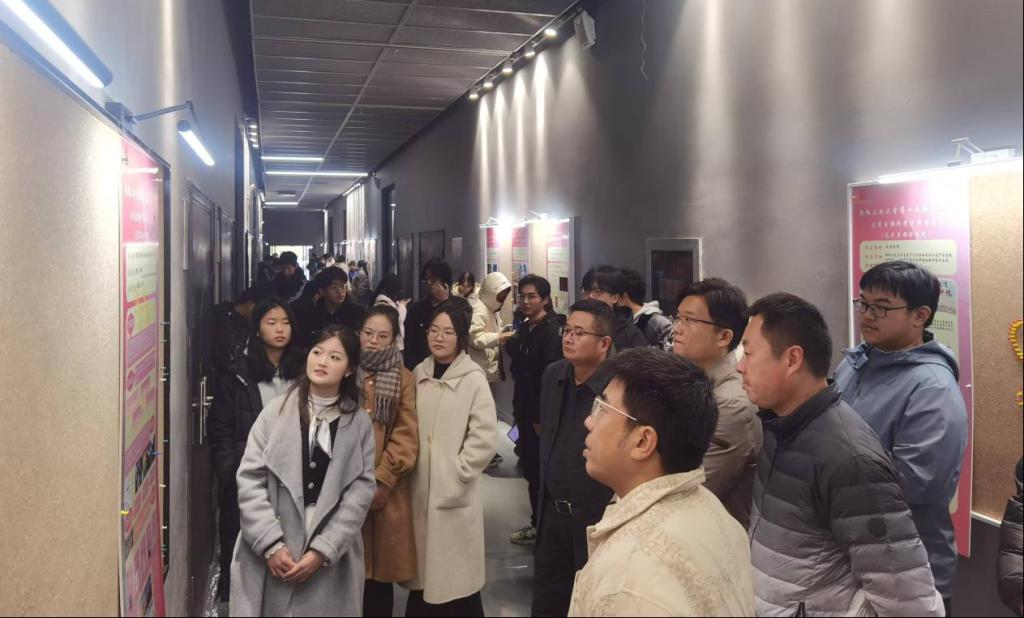 大赛分为路演和答辩两个环节。路演环节在学院大厅一楼展廊精彩上演。各个参赛团队精心布置展示区域,通过海报、模型演示等方式向评委老师们介绍自己的项目。