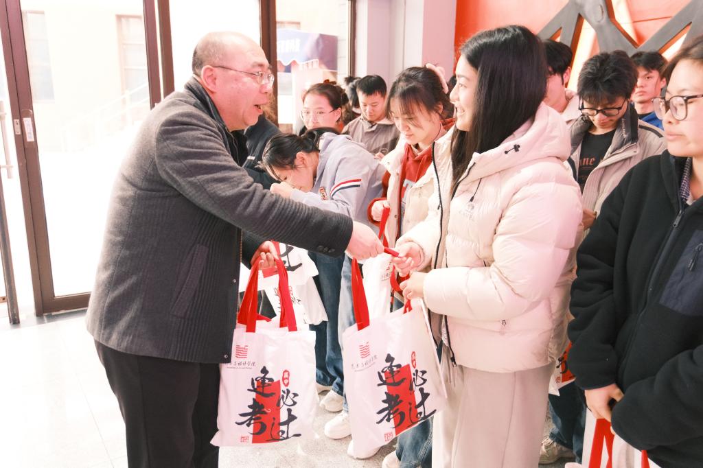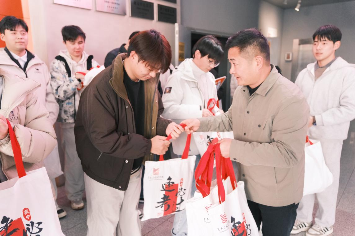 学院精心筹备了慰问大礼包,这份独具匠心的礼包,以学院专属定制帆布袋承载,内含七样寓意美好的实用物品:一本定制笔记本,寓意笔耕不辍;一双“金榜题名”暖心冬袜,愿学子脚踏实地;两包暖足贴,抵御严寒;一份文具套装,助力考场驰骋;一个精美励志挂件,寄托祝福;两包纸巾,呵护细微。学院永远是学子坚实的后盾。