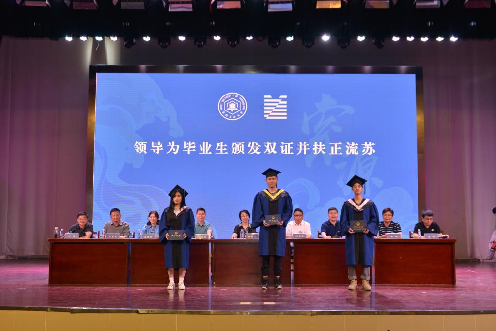 随后,典礼进行到最庄严的环节——学位授予仪式。参会领导为2022届毕业生逐一拨穗正冠、颁发毕业证书、授予学位并合影留念。