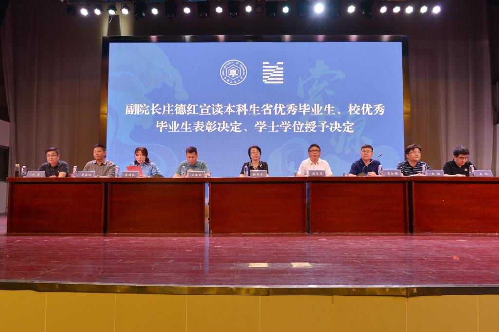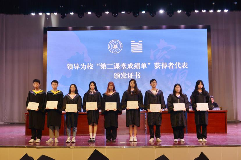 在欢快的音乐声中,领导老师们依次为校“第二课堂成绩单”获得者代表、本科生校优秀毕业生获得者颁发证书。副校长顾明言为研究生省优秀毕业生、本科生省优秀毕业生获得者颁奖,全场响起阵阵掌声,气氛热烈。
