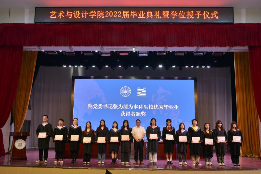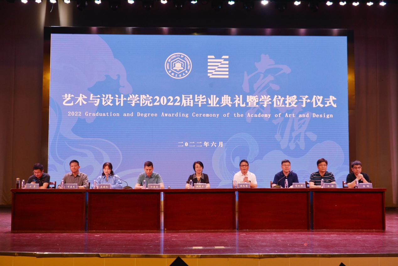 全体党政领导与全体师生向即将开启人生新阶段的毕业生们表示热烈的祝贺,向多年来辛勤工作在育人一线的全体教职工表示深深的敬意与衷心的感谢。同时指出,2022象征着圆满的轮回和美好的开始,走出校门,同学们将踏上中华民族开启实现第二个百年奋斗目标新征程的步伐。他以师长的名义,向同学们提出了两点希望:一是要坚守德行并重,谨记厚德方能致美,设计人修德,既要立意高远,又要立足平实,坚定设计初心,坚持真品创作,不断砥砺前行。二是要坚守知行合一,希望同学们未来对每件事,每一件作品都追求完美和极致,在点点滴滴中传承工匠精神,坚守知行合一,勤在事上磨练,能在静中体悟,做有“韧性”的设计人,要挑得起重担,负得起责任,经得住挫折。坚守为民初心,坚持“真善美”,积极进取,努力探索,精艺求新。