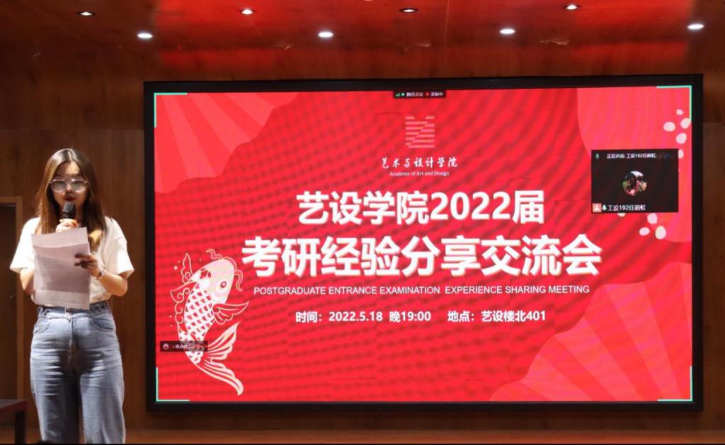 于艺设楼北401举办了2022届考研经验分享交流会,邀请2022届考研成功的毕业生为同学们作考研经验交流与分享。