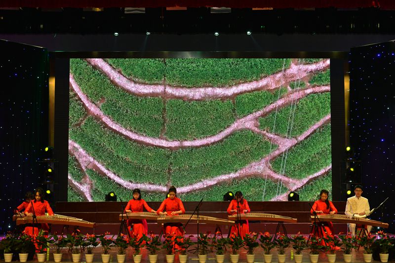 音乐会分为“峥嵘岁月”、“日月新天”、“春天故事”、“复兴之路”四个篇章,以经典乐曲《金蛇狂舞》澎湃开场,热情洋溢、昂扬高亢的旋律拉开了峥嵘岁月的金色过往。民乐合奏《我的祖国》、男生小合唱《弹起我心爱的土琵琶》、男生独唱《松花江上》等慷慨激昂的曲调将先辈顽强拼搏的坚强意志展现的淋漓尽致。西洋乐合奏《红旗颂》、女生小合唱《唱支山歌给党听》、古筝合奏《瑶族舞曲》以及情景剧表演唱《寸心》再现了中国共产党人继往开来、与时俱进的美好奋斗史,表达了人民对党的坚定拥护与热爱。歌曲《把一切献给党》诉说了党员无限忠诚的向党心声。小提琴齐奏《伟大的北京》奏出北京的光辉历史篇章,二胡齐奏《战马奔腾》尽诉边疆战士的赤胆衷肠,生动讲述了改革开放的“春天故事”。管乐重奏《第二圆舞曲》、女生独唱《白鸟》、《七月的草原》以及合唱《灯火里的中国》、《少年》、《领航》共同唱出了闪耀中国、辉煌时代。