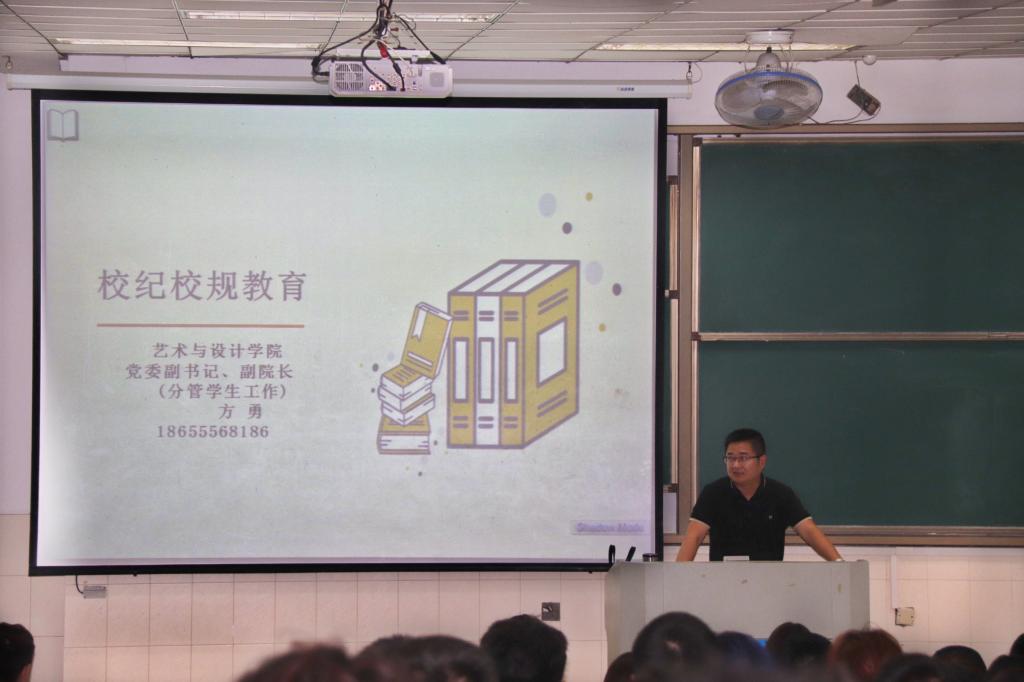 大“家”意识的必要举措和最低要求。会中,方勇结合学生手册说明了主要校规校纪条例及其对应处理办法,并列举了常见违规违纪行为,阐明了利害关系,告诫新生要不断提高自我素质以及辨别能力,树立正确的“规矩”观,加强底线意识,养成良好习惯。