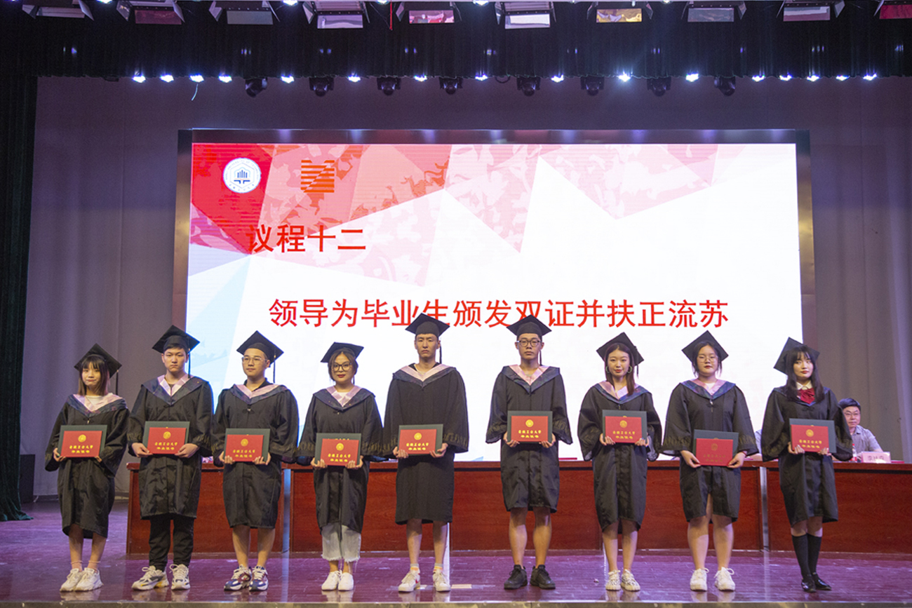 随后,典礼进行到最激动人心的阶段——学位授予仪式。参会领导为2021届毕业生逐一拨穗正冠、颁发毕业证书、授予学位并合影留念。