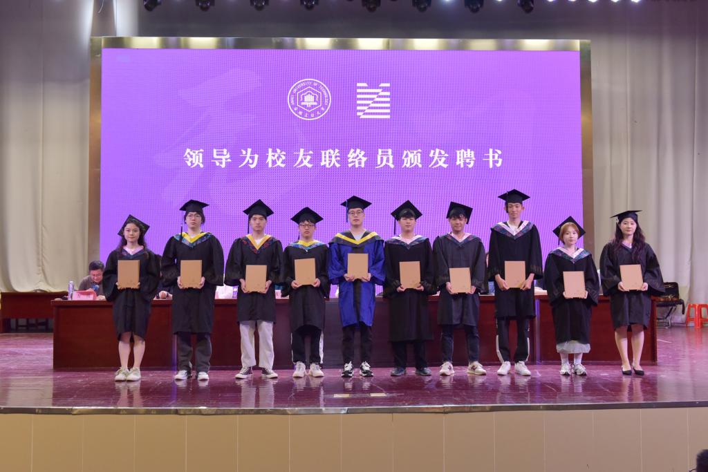 在欢快的音乐声中,领导老师们依次为校“第二课堂成绩单”获得者代表、本科生校优秀毕业生获得者颁发证书。副校长顾明言为研究生省优秀毕业生、本科生省优秀毕业生获得者颁奖,全场响起阵阵掌声。