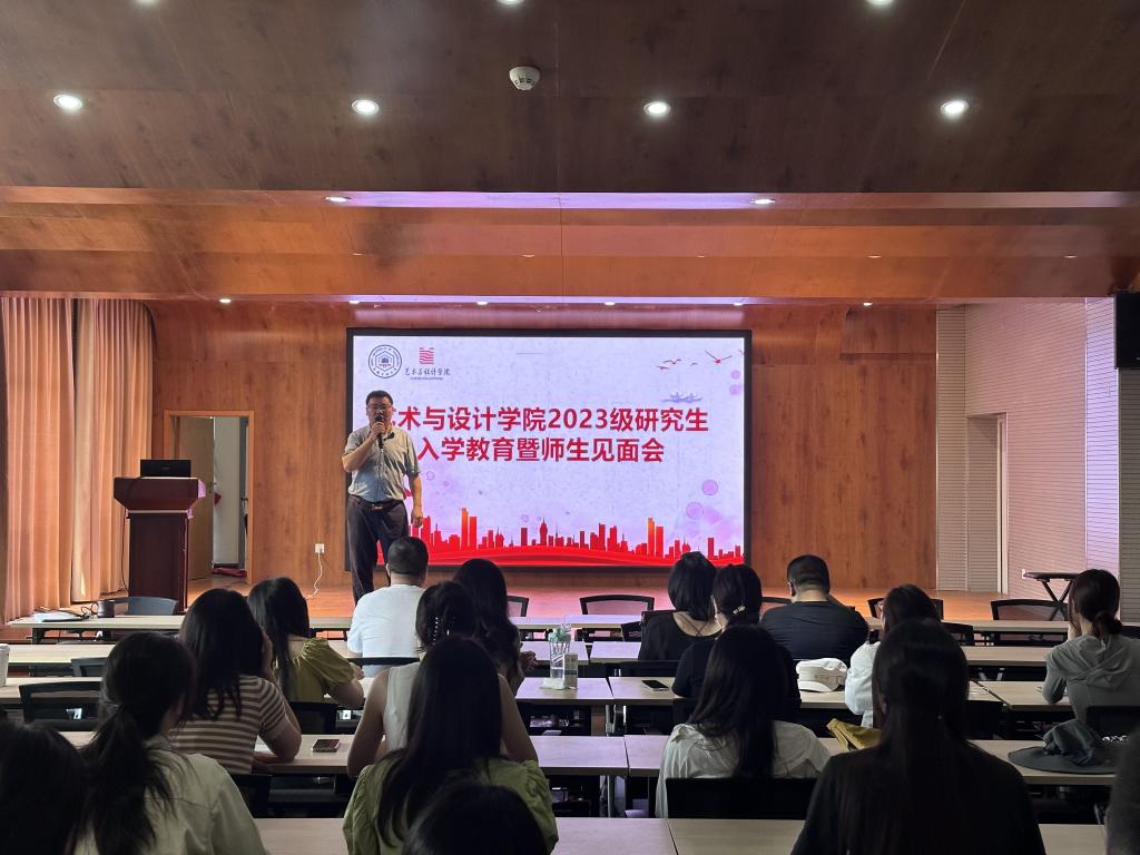 在艺设楼401举行2023级硕士研究生入学教育暨师生见面会,院长肖旺群,全体硕士生导师,科研(研究生)秘书,研究生辅导员以及全体2023级研究生参加了见面会。