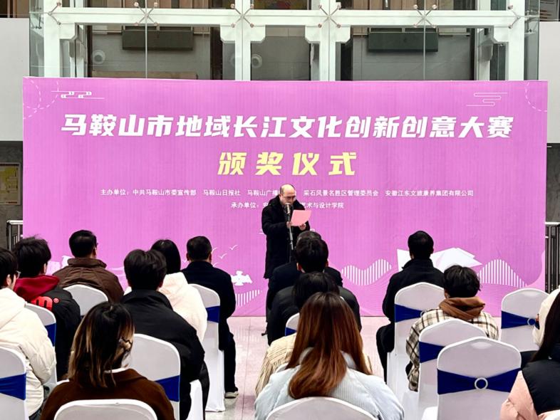 承办的“马鞍山市地域长江文化创新创意大赛”颁奖仪式在市新三馆举行。市委常委、宣传部部长陈永红,院党委书记徐新卫,副院长佘醒及市日报社、市广电局、市文旅局、市文旅集团领导出席活动,并为获奖代表颁奖。徐新卫在颁奖仪式上致辞。