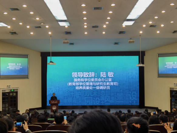 国务院学位委员会办公室(教育部学位管理与研究生教育司)培养质量处一级调研员陆敏代表国务院学委办、教育部研究生司向大会的举办表示热烈的祝贺。她指出,要进一步转变观念,提高认识,充分认识专业学位与学术学位研究生教育的同等地位;分类制定学位论文基本要求和规范、评阅标准及核查办法。她希望各个培养单位深入学习全国教育大会精神,贯彻落实习近平总书记对研究生教育工作作出的重要指示精神,引导研究生把论文写在服务生态文明和美丽中国建设的大地上。