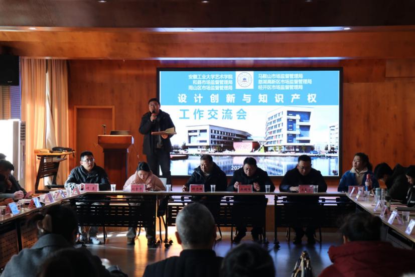 院长肖旺群致欢迎辞,并详细介绍了学院近年来在教学、科研和产业合作方面的发展情况。他强调,设计创新是推动知识产权产业化的重要驱动力,学院将继续加强与政府和企业的合作,促进创新成果的转化应用。随后,各县区局的代表就各自领域的知识产权工作进行了交流发言。他们分享了在知识产权保护、宣传培训以及专利申请等方面的经验,并探讨了政校企合作在知识产权领域的路径和模式。企业代表们也积极发言,分享了在生产经营过程中遇到的技术难题和创新需求,并表达了对专利产业化的期望与规划。他们希望通过此次交流,能够获得更多的支持与合作机会,推动企业技术创新和专利成果的商业化应用。马鞍山市知识产权保护中心的代表介绍了近年来与porn直播