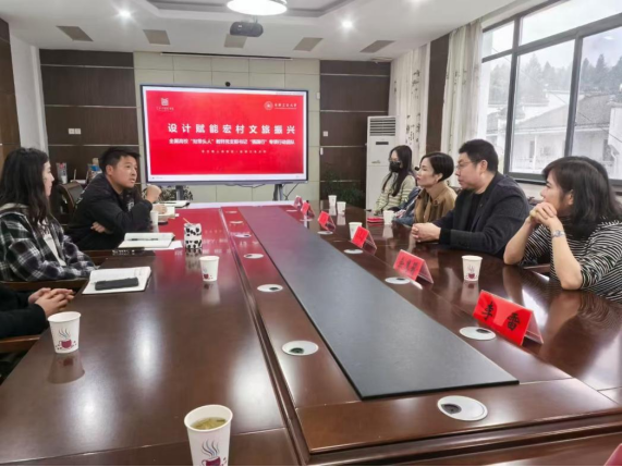 黟县宏村镇副镇长李彦等有关党政领导参加座谈会。会上,李彦副镇长详细介绍了宏村镇文旅产业发展现状、产业需求以及近年来与多所高校共建实践基地的情况;视觉艺术教育党支部书记李林森汇报了支部建设及助力乡村振兴工作的进展;视觉艺术设计系主任佘慧莉则分享了系室教师在服务乡村振兴过程中取得的科研工作案例。