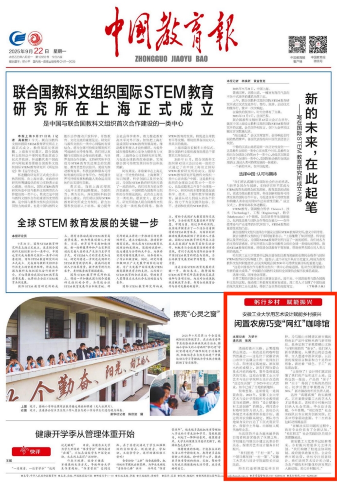 用艺术设计赋能乡村振兴 闲置农房巧变“网红”咖啡馆》,深度报道了学院师生团队利用专业特长,将艺术设计融入乡村建设,成功激活乡村闲置资源的创新实践。