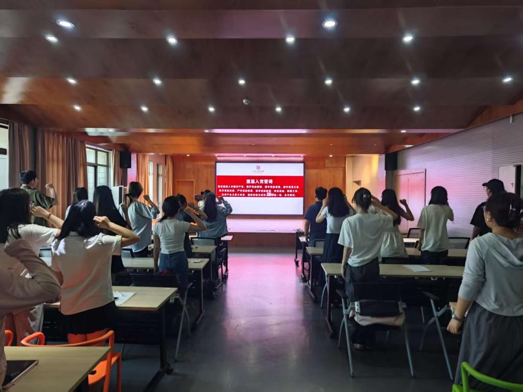 随后,毕业班辅导员罗凡就毕业生党员组织关系转接工作进行了专题讲解和培训。罗凡详细说明了组织关系转接的重要性、规范流程、关键时间节点及注意事项,并对党员提出的问题进行了细致解答。会议最后,全体党员重温入党誓词。