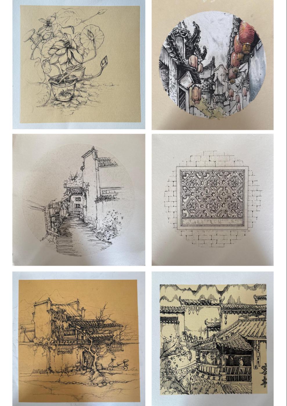 宏村是中国历史文化名村,被誉为“中国画里乡村”。同学们参观了宏村以及标志性建筑——南湖书院等。南湖书院是宏村文化的象征,其建筑风格古朴典雅,体现了徽派建筑的精髓。同学们在南湖书院前写生,感受徽派建筑的韵味,学习如何用速写、色彩等绘画手法表现古建筑的线条与光影。老师指导学生注意建筑的细节,如马头墙的层次、砖雕的纹理等,鼓励学生在绘画中融入自己的理解和创意,捕捉徽派建筑的独特魅力。