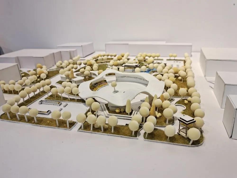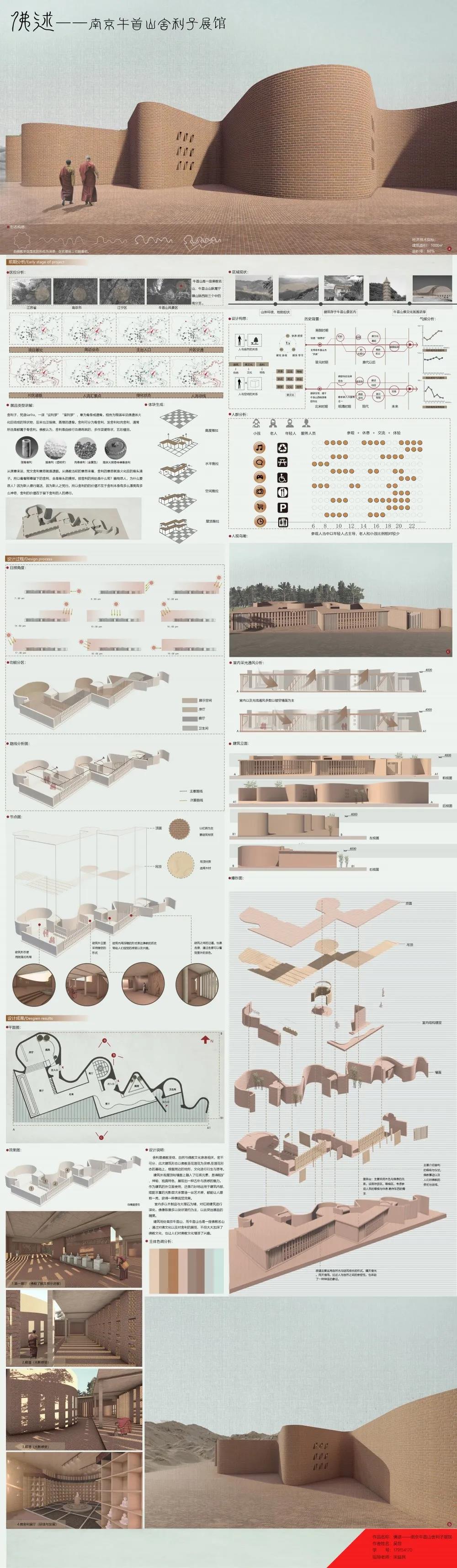 设计说明:此次建筑形态以佛教圣花莲花为灵感,在莲花形态的基础上,根据周边的地形,文化进行衍生与思考。而在建筑的整体外观融入了红砖元素,使整个建筑物整体看起来更加神秘,独具特色。