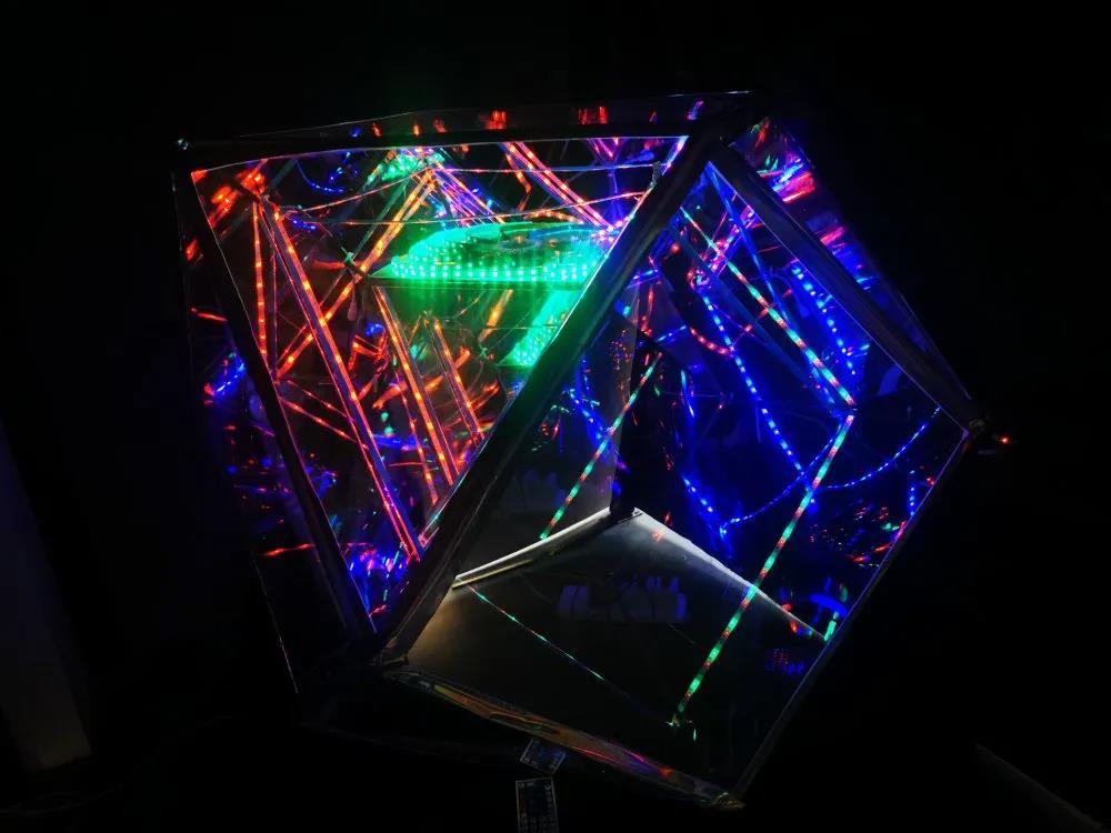 设计说明:作品意在探讨一种“镜像关系”,主体部分是由镜面和多条灯带构成的一个新媒体互动装置,由此呈现出一个向内无限延伸的镜内空间:在一个蓝色的密闭空间内获得沉浸式的体验,让人在观赏中开始思考,从而获得一种深层次的体验感及启迪。