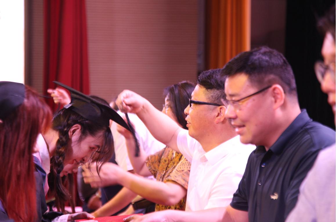 随后,典礼进行到最激动人心的阶段——学位授予仪式。参会领导为2021届毕业生逐一拨穗正冠、颁发毕业证书、授予学位并合影留念。