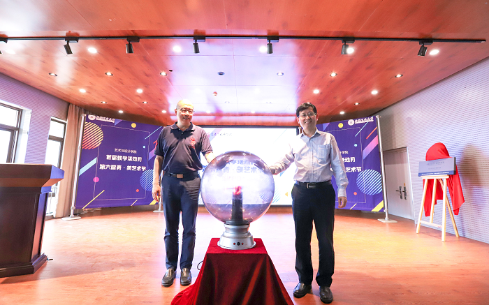首届教学活动月、第六届“青•美”艺术节启动仪式在秀山校区教创楼召开。校长魏先文,国务院学位委员会设计学科评议组成员、教育部设计学教学指导委员会委员、南京理工大学设计与传媒学院院长李亚军出席仪式并共同启动了开幕球。江苏大美天第文化产业有限公司等多家企业负责人及校宣传部、学工部、教务处、工创中心、团委负责同志,学院教师代表、学生代表参加仪式。校党委常委、宣传部部长黄勇致贺辞。院党委副书记、副院长汪海波致欢迎辞。启动仪式由院党委书记王薇主持。