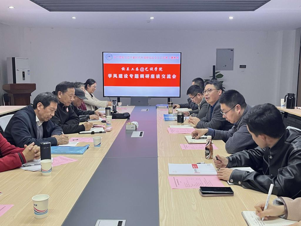根据学校深入开展学习贯彻习近平新时代中国特色社会主义思想主题教育的实施方案总体安排,坚持问题导向,大兴调研之风,4月25日下午,艺设学院与校关工委联合开展学风建设专题调研。校关工委常务副主任李明、副主任汪达环、关工委学习促进组老师、关工委办公室人员参加调研活动。艺设学院党委书记张为清、副书记方勇、团委书记汪正、教学督导员李林森,以及辅导员、班主任、导师、学生代表与关工委老同志们进行了交流座谈。
