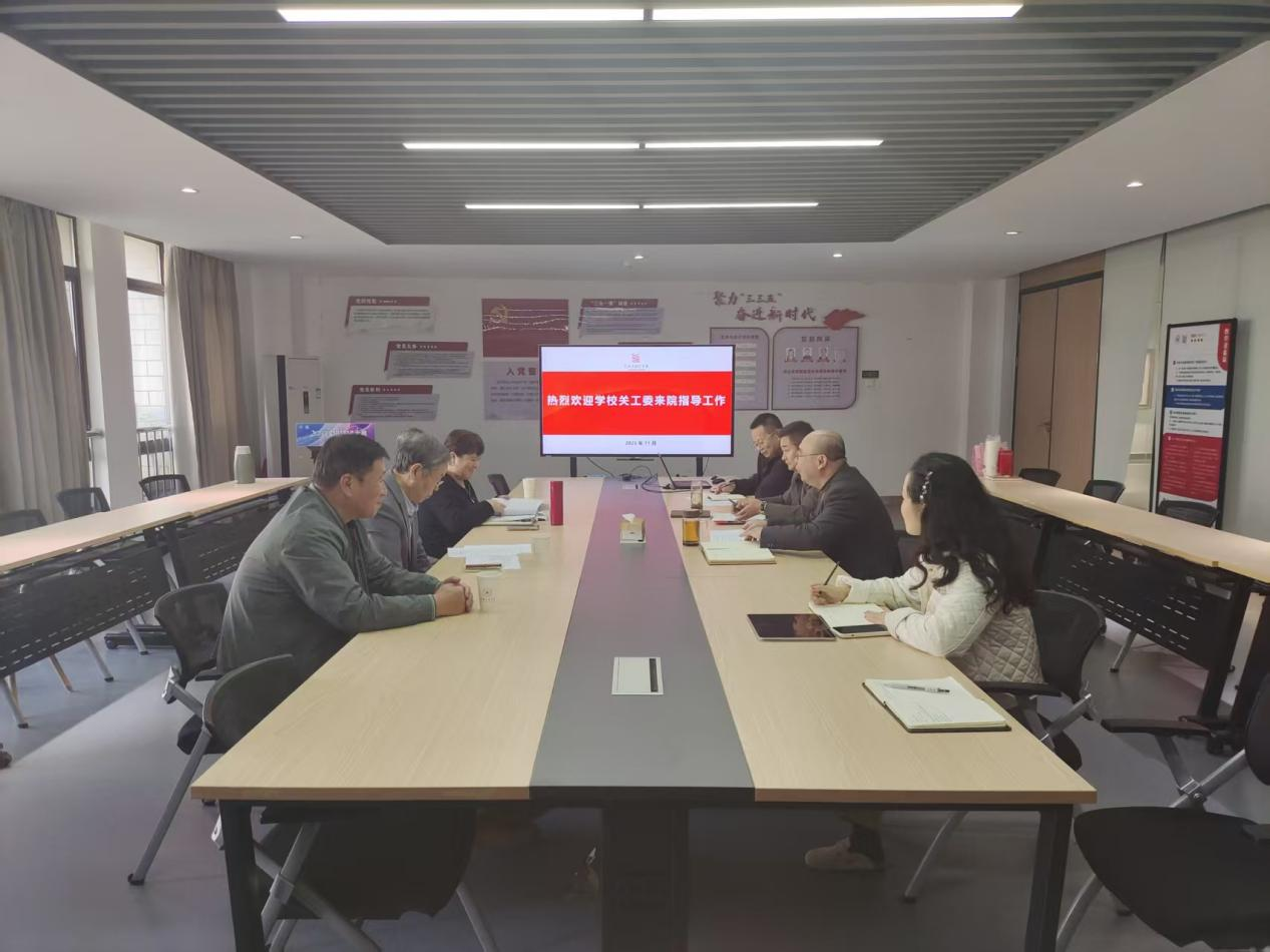 11月13日,校关工委副主任蔡保兴、委员方致君一行赴porn直播 ,就“五好”关工委创建工作开展专题调研。学院党委书记、关工委主任徐新卫,党委副书记、纪委书记、副院长、关工委副主任方勇,关工委常务副主任晏群、老教师代表蔡修权关工委委员参加调研座谈。