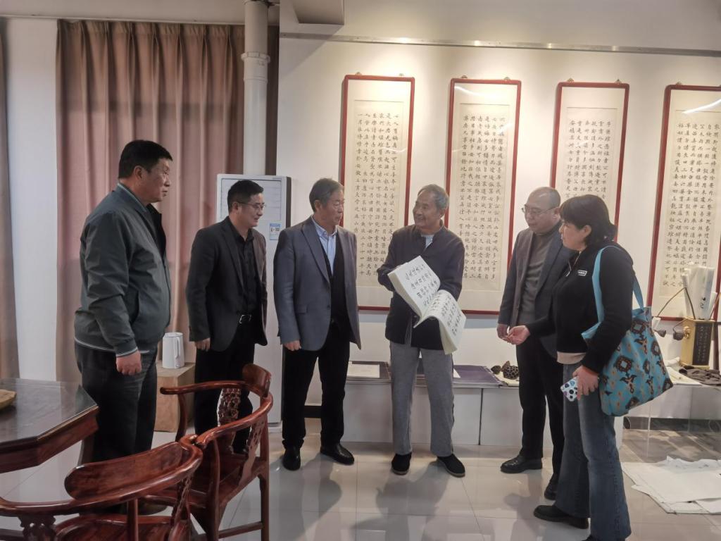 在实地走访环节,调研组参观了学院“书法研学工作室”。蔡修权介绍了其将书法艺术融入新生专业启蒙教育的实践探索,展现了“师者风范”与“文化传承”的有机统一。
